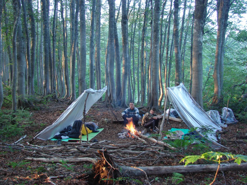 Первый привал на болагане егерей возле слияния р. Шахе и р. Санаторка