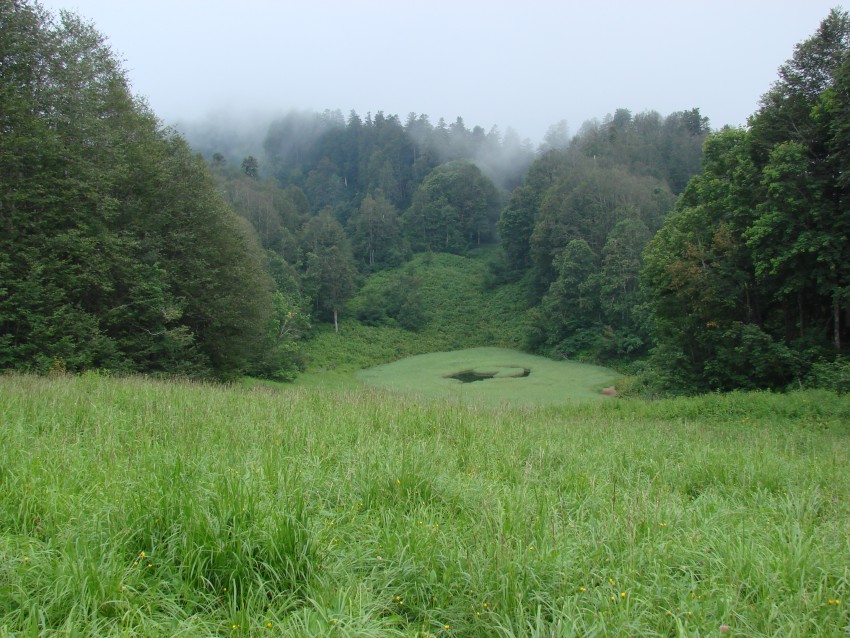 заросшее озеро ровно посередине хребта