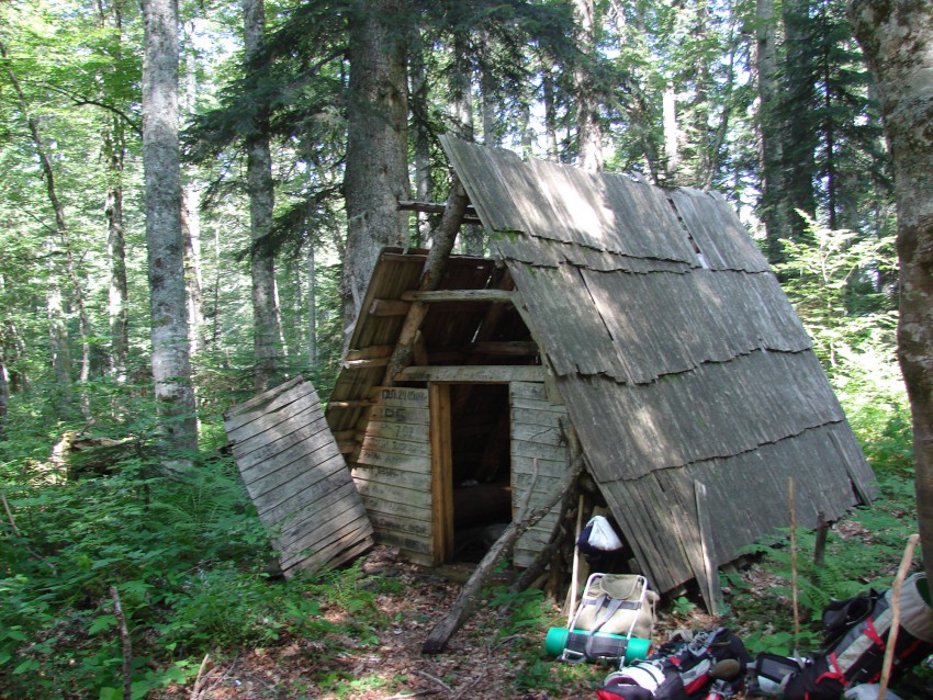 у подножия горы мы нашли родник и рядом остатки разрушенного балагана вот там были следы охотников (браконьеров) наверняка с лошадьми. скорей всего со стороны амуко-сочи