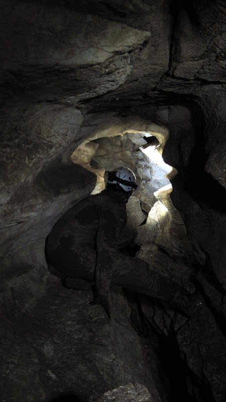 Пройдя ещё несколько десятков метров ход сужается и кажется, что это конец пути,