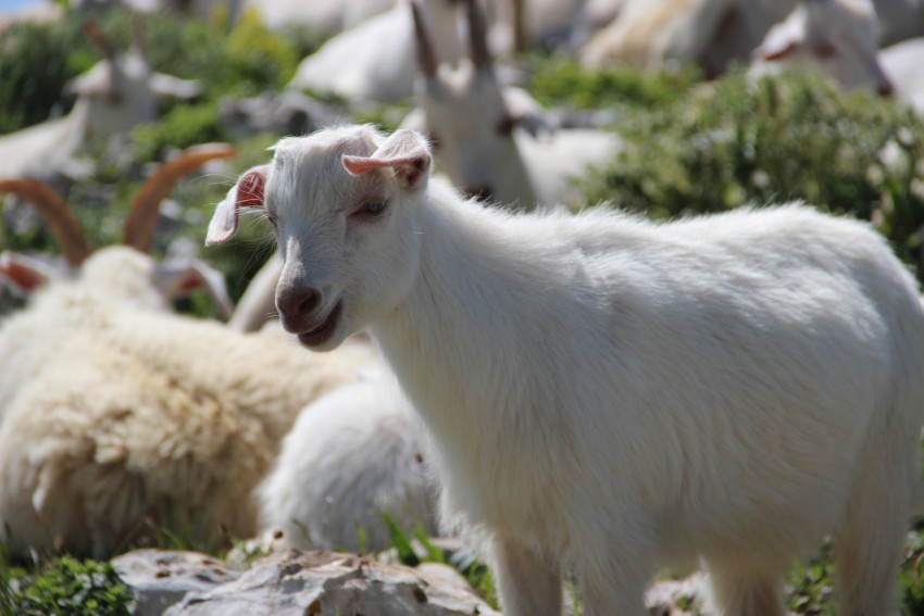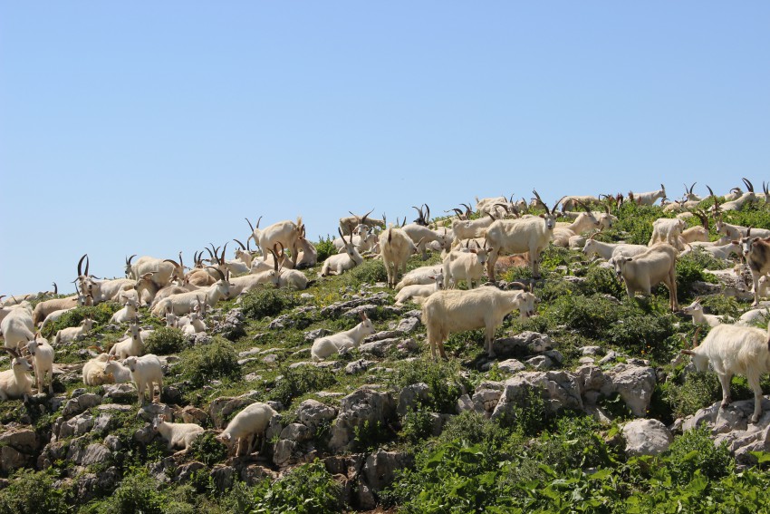 Мы поднимались по узкой горной тропе к вершине горы, было безлюдно. И тут из-за угла показалось стадо коз во главе с собакой-пастухом: 1.
