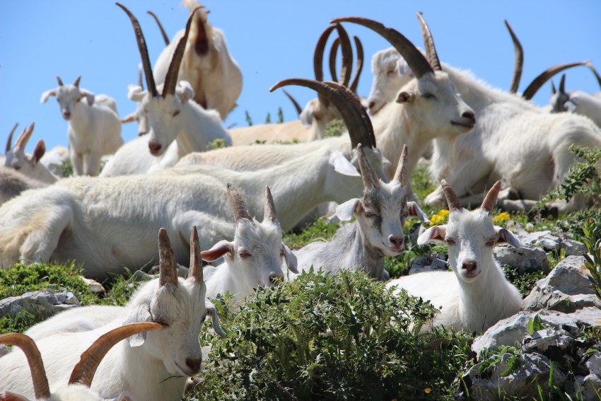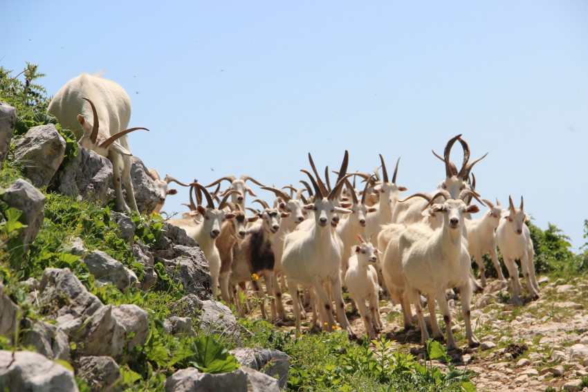 Мы поднимались по узкой горной тропе к вершине горы, было безлюдно. И тут из-за угла показалось стадо коз во главе с собакой-пастухом: