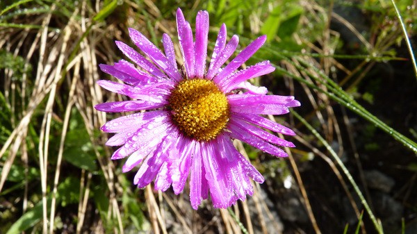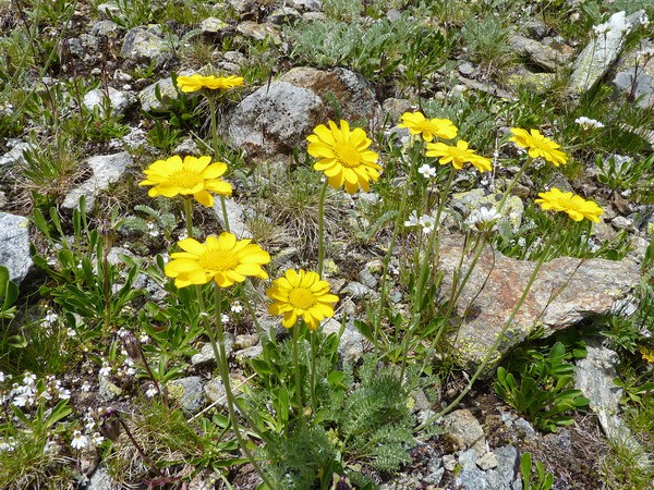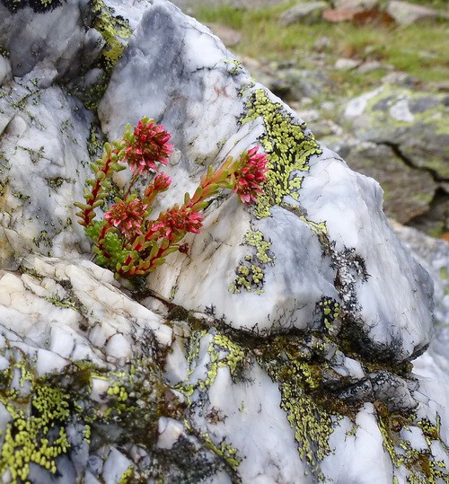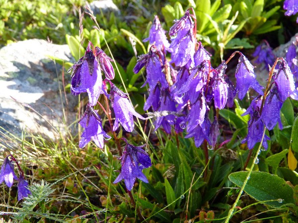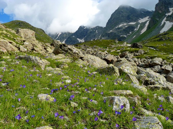 Тропы не было. Шли по обширному каменному полю, среди которого ярко блестели вымытые дождём альпийские цветы.