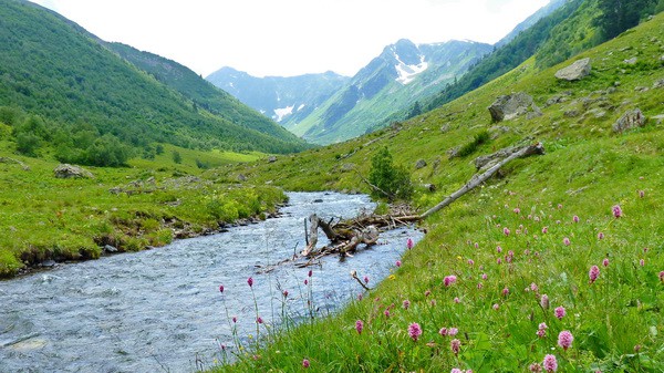 десятки величественных ледников, словно ёлочными гирляндами обвешивают вздыбленные как будто в бушующем море высоченные пики. Быстрые ручейки и родники, сливаясь, превращаются в реки и, набирая силу, несутся вниз мимо привольных горных лугов, усеянных множеством альпийских растений, в том числе и лекарственных. Из диких животных в этой горной местности обитают кавказский олень, зубр, медведь, тур. серна, кабан, волк, лисица. дикий кот, куница и др. Птиц насчитывается около 150 видов — кавказский кеклик, улар и самые крупные из мира пернатых: бурый гриф, стервятник, белоголовый сип. Растительность этого района очень разнообразна. Здесь насчитывается более 140 видов древесных и кустарниковых пород. Сохранились уникальные участки пихтового леса.