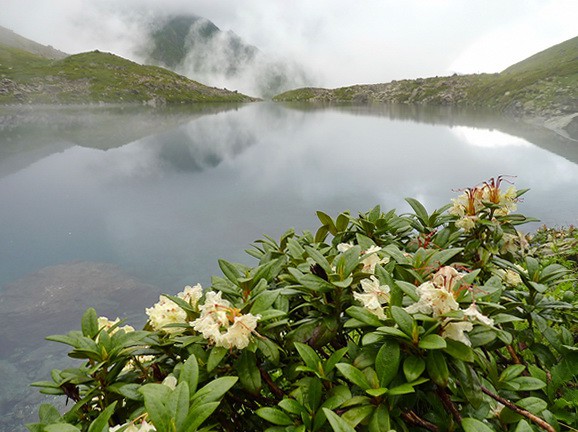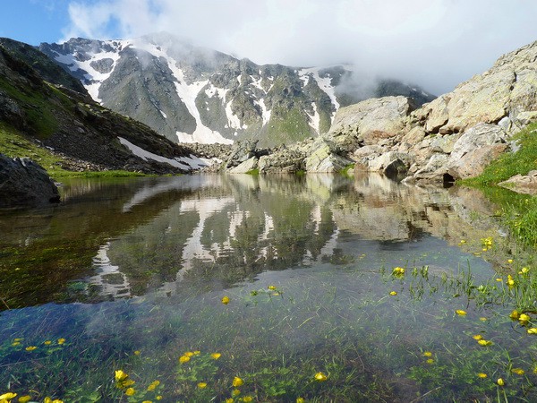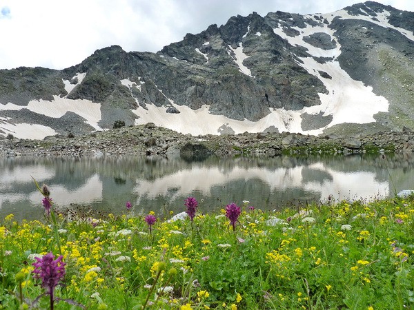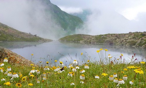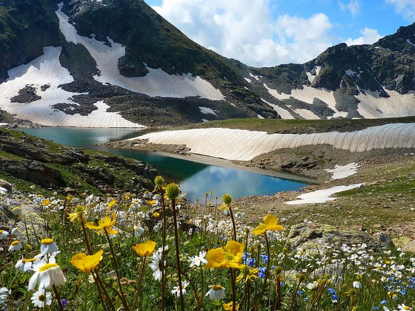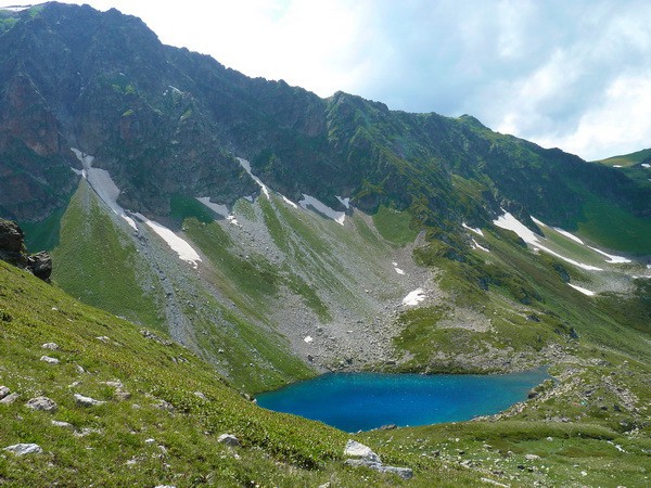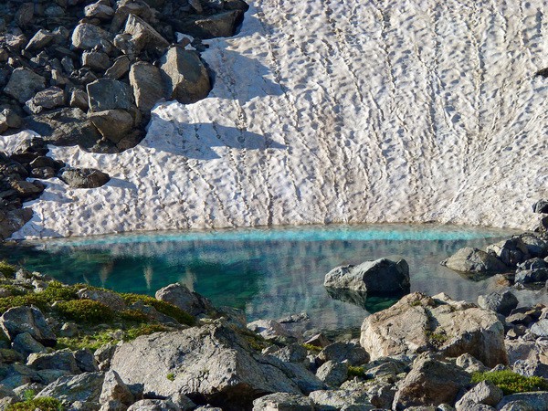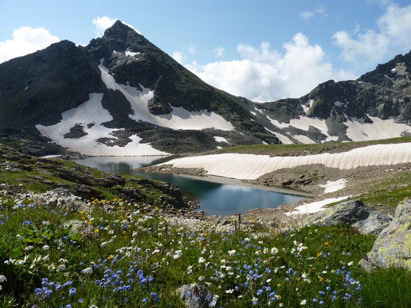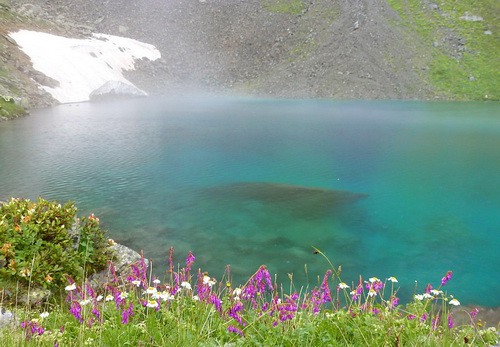 а озеро Семицветное казалось волшебным изумрудом, вставленным в оправу из скал, снега и цветов.