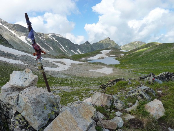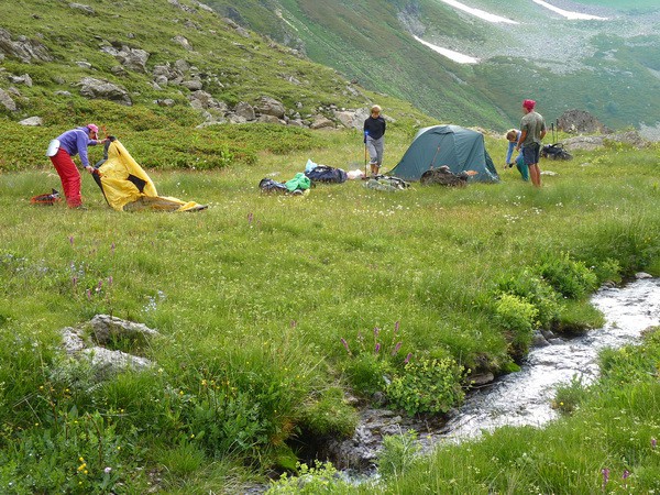 Переполненные впечатлениями и высокими чувствами, ужинаем, не забывая пожелать солнечной погоды на завтра, и ложимся спать на ковре из альпийских цветов. Завтра нам предстоит трудный день — преодоление перевала Дукка(2570м — н/к). Так закончился третий день путешествия.