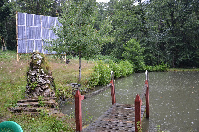 Первым делом мы попарились в Русской бане с вениками. Небольшой деревянный домик, который топится дровами и имеет выход к естественному водоему, в который можно нырять после парилки