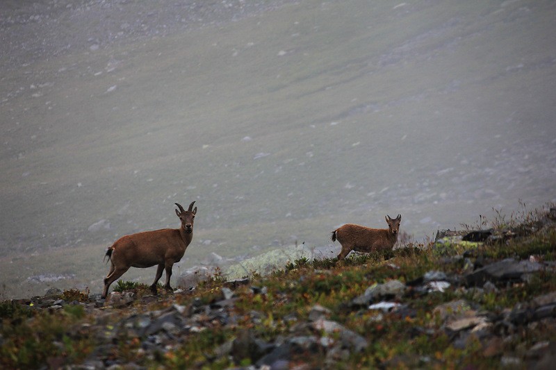 Утром просыпаемся от раскатов грома. Сахарный и все кругом затянуто облаками. Сидим с кислыми лицами и угрюмо варим кашу. Желание подниматься пропало, ведь мы в том году там побывали уже «в молоке». Решили оставить Сахарный в покое и идти на перевал Строителей. Далее следуют фото: