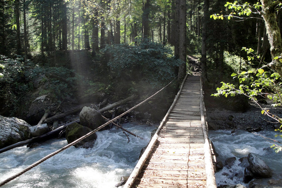 Мост через Лабу в месте слияния ее с Безыменкой. Этот мост уже разрушился и заповедник построил новый мост чуть выше по Лабе. 10:00 утра.