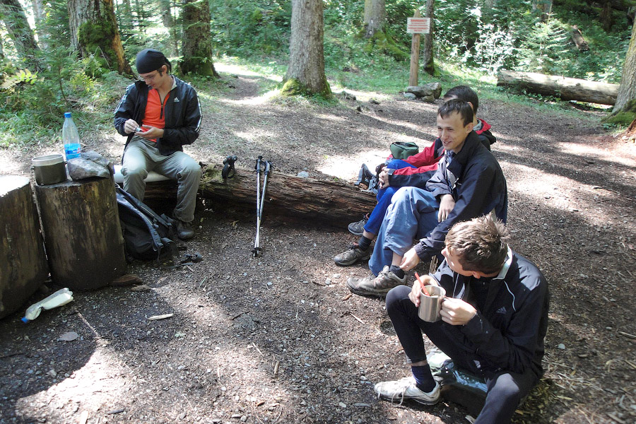 И собираемся снова на перевале Аишха. Машина уже скоро приедет за нами, остался небольшой получасовой спуск к домику заповедника. Всего лишь 15:00, а мы уже почти пришли.