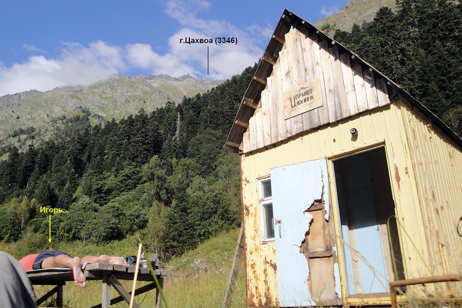 К обеду пришли на приют Цахвоа — домик у подножия. Дальше идти нет смысла, нами запланирована ночевка именно тут, мы даже палатки не брали. Время 13:30, не ожидали что придем так рано. В следующий раз пойдем сразу наверх, но надо будет взять палатки.