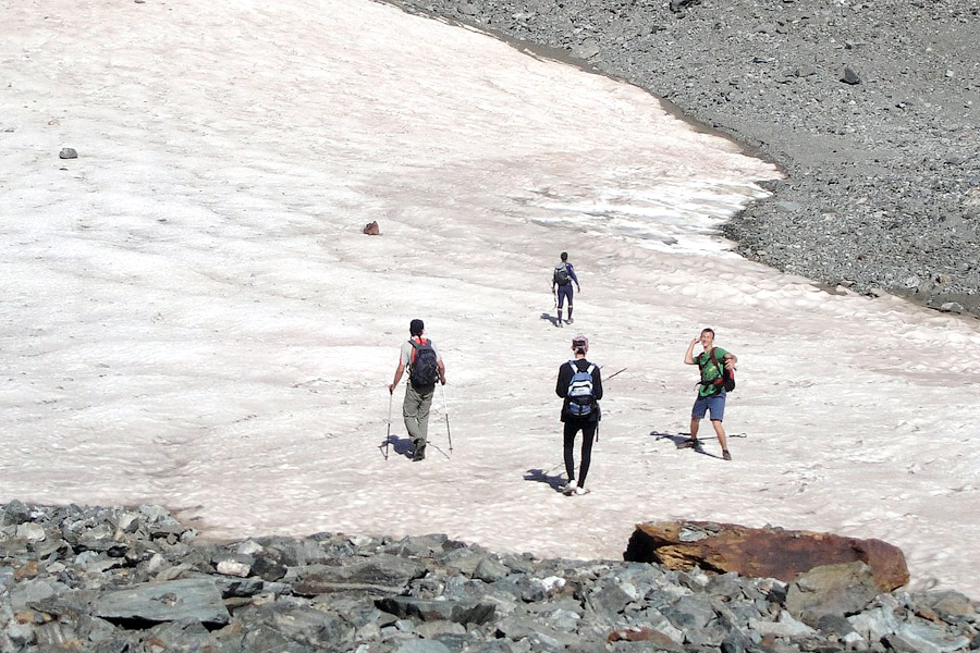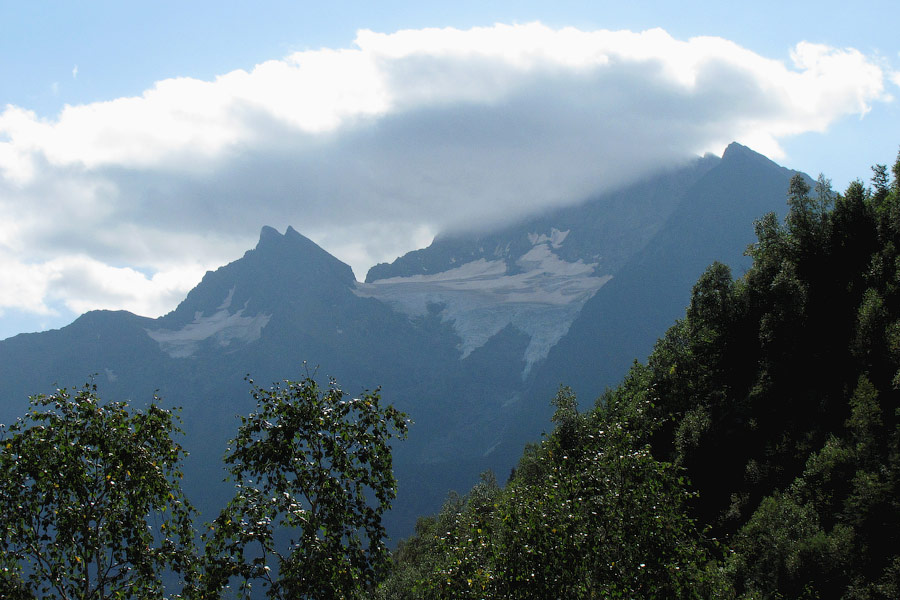 Оборачиваемся и видим гору Цахвоа. Вчера мы были там. Отсюда выглядит неказисто (без ледников).