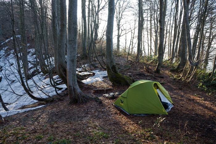После затяжного подъема ночуем на «Пихтовой поляне»