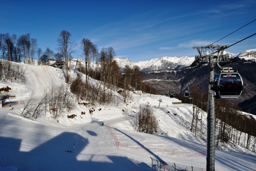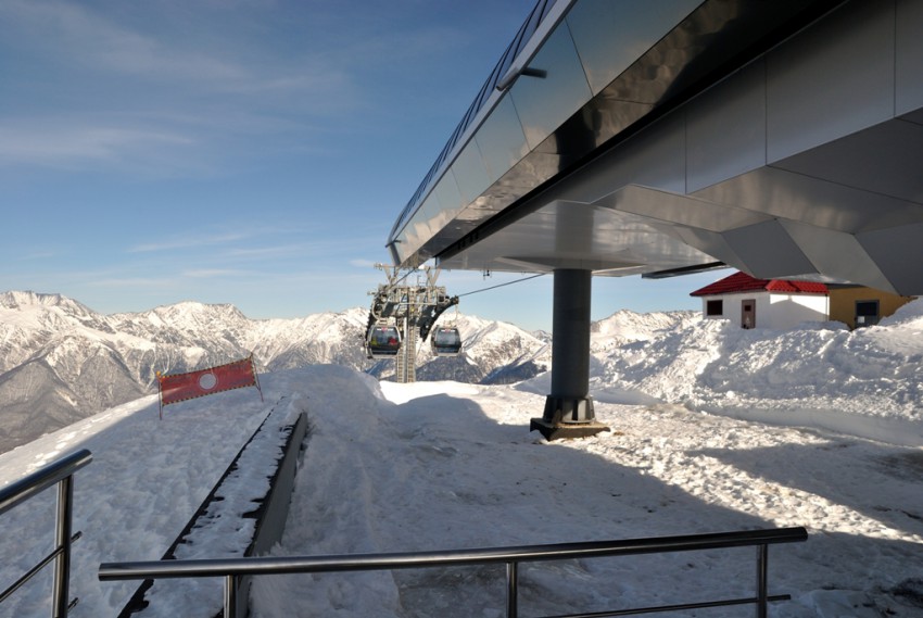 Подъем происходит в несколько этапов и начинается в долине Роза, на входе как принято в последнее время сисьюрити и досмотр вещей. Подъемник Олимпия поднимает на Роза Плато, которое находиться на уровне 1170 метров.Второй этап это подъемник Заповедный Лес который доставляет туристов на 1350 метровую отметку под названием Беседка.Ну и заключительный этап это Кавказский экспресс и отметка 2320 метров, наивысшая точка курорта Роза Хутор.