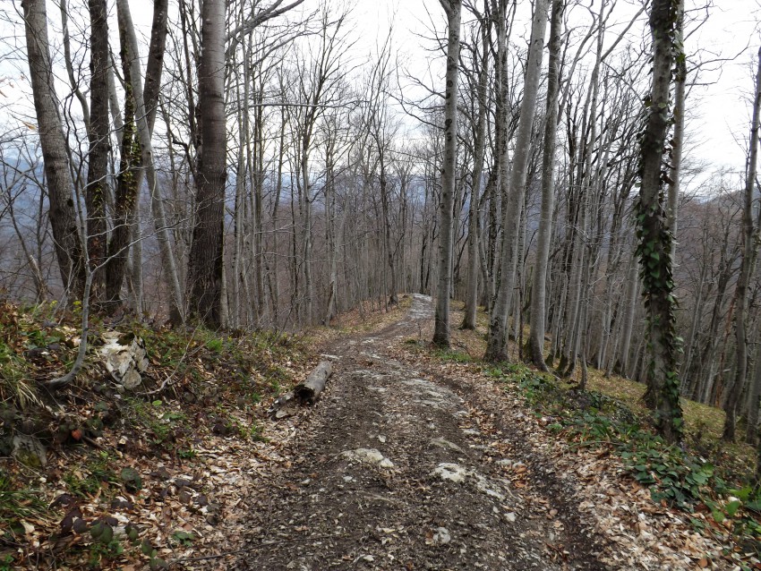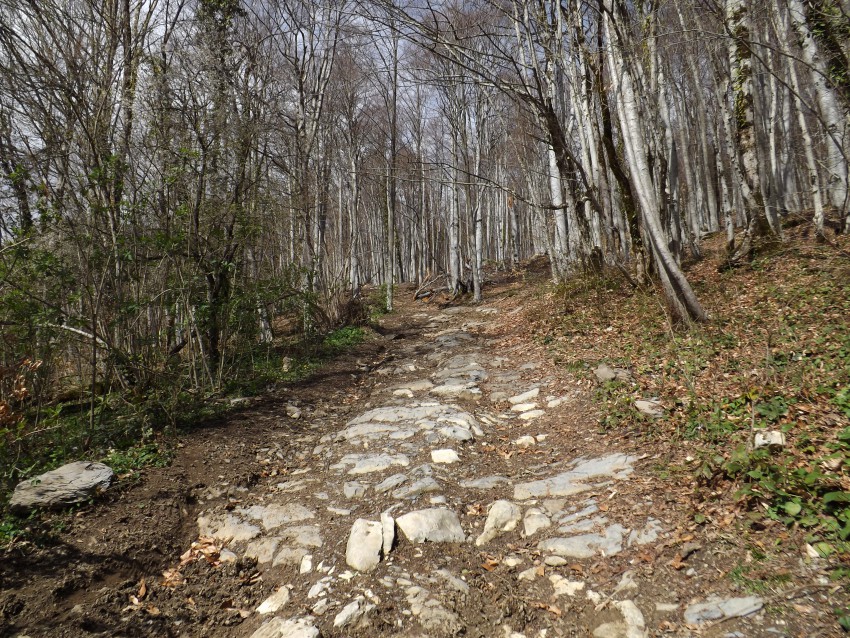 За пикниковым комплексом дорога начинает плавный подъём. Идём по лесу, видов красивых нет, но лес уже начинает зеленеть, цветы кругом, птицы поют, для прогулки и это хорошо!
