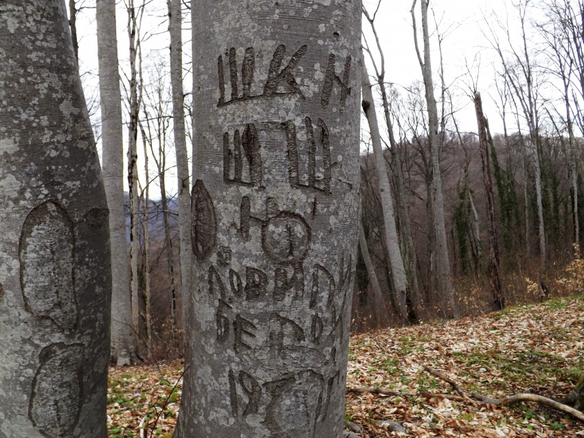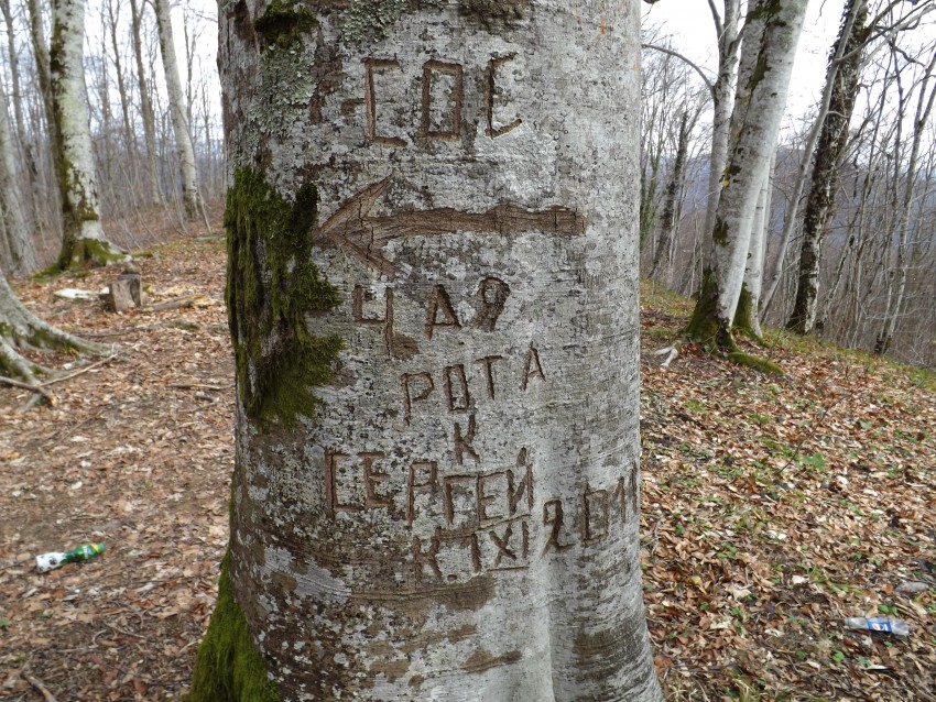 Павел Мудров делал недавно целый топик про надписи на деревьях. Так там на хребте их множество! Удивило, потому что место вроде бы такое, что и ходить там некуда, но надписи в основном старые, такие, как эта