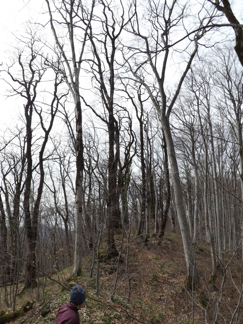 До подъёма на хребет и дальше движемся уже по хребту. г. Амуко в снегу.