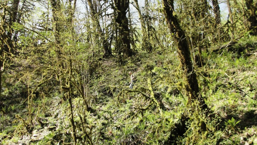 От водопада, через который проложен мостик, этот находится значительно выше. Подход к нему только как я описал, там очень крутые склоны.