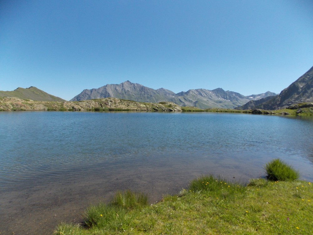 В самом озере отражается величественный ершистый гребень пика Торнау 2922 м.