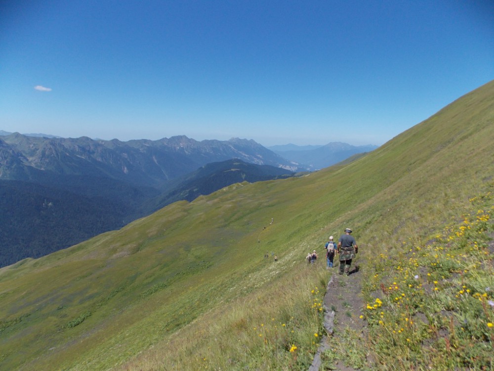 Каждый год летом Краснополянцы отправляются в поход в горы. В этом году 2 августа был девятый выход. На второй день похода группа отправилась на озеро Клумбочка. Зеркало озера Клумбочка находится на высоте 2558,8м. над уровнем моря. Озеро относится к типу каровых озёр, находится в обширном каре, занимает нижнюю, наиболее крупную котловину этого кара.
