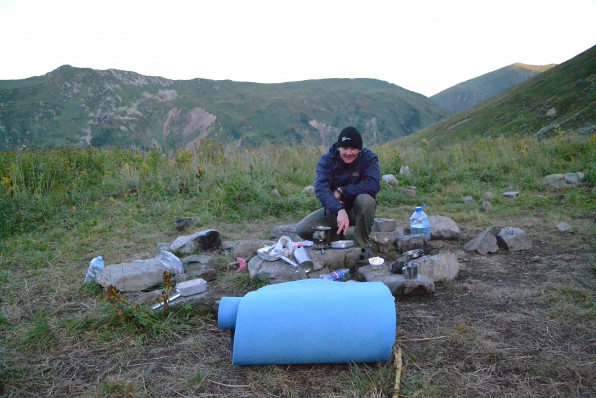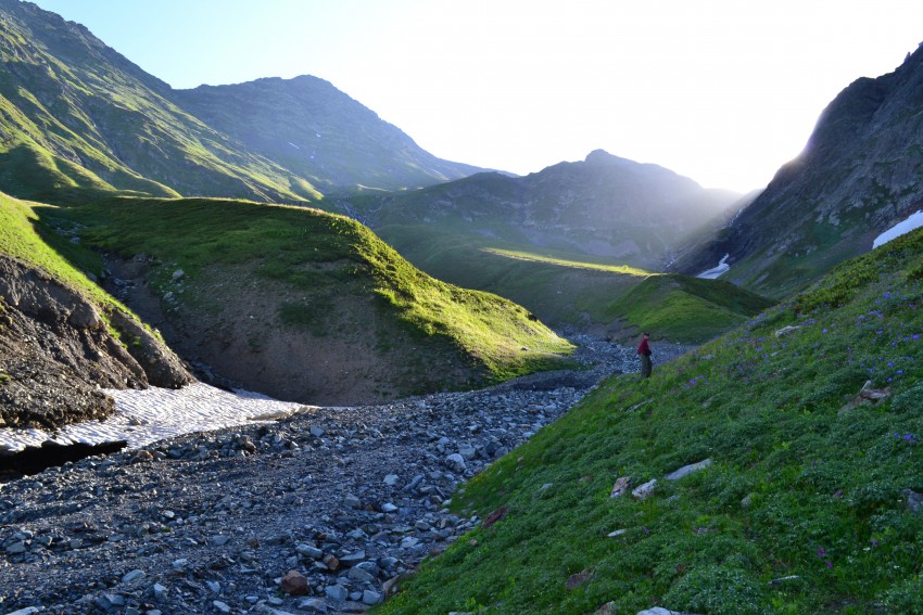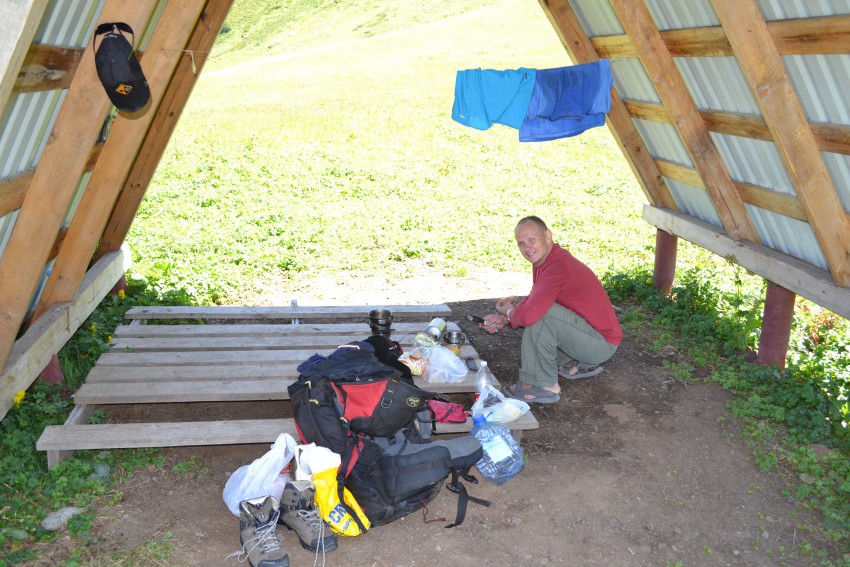 В долину мы пришли к 16. Разбили лагерь и решили купаться и загорать на плоском камне. В общем отложили восхождение на следующий день, на раннее утро.