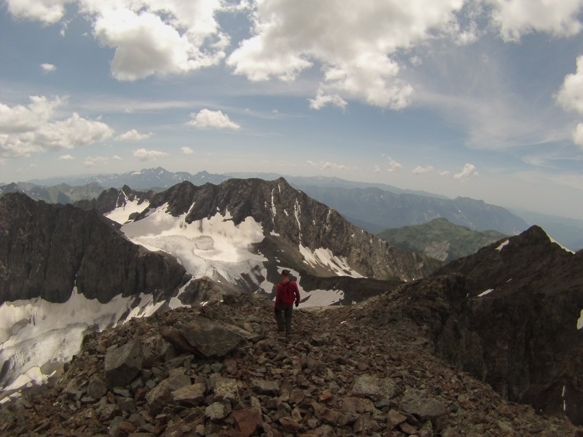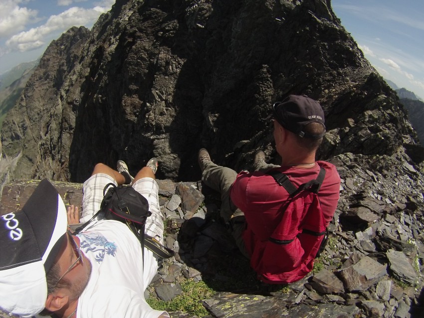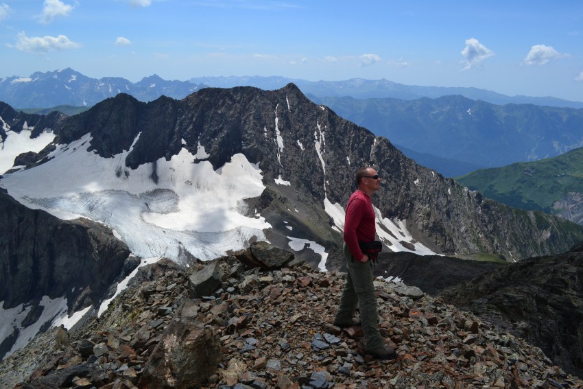 Я к сожалению с вершины Южной Псеашхо сорвался на леднике (снял сноуборд для фотографирования и подскользнулся), летел около 250 метров на камни — очень повезло что первый камень, в который я влетел был не закреплен и оказался подходящего размера — он сдвинулся когда я в него уперся ногами и значительную часть энергии погасил, вобщем отделался легким испугом — порваной вклочья одеждой, треснутым ребром и содраной кожей на руке и ноге. Когда летел, думал всё, конец. Больше никогда не ступлю на ледник без кошек и ледоруба.