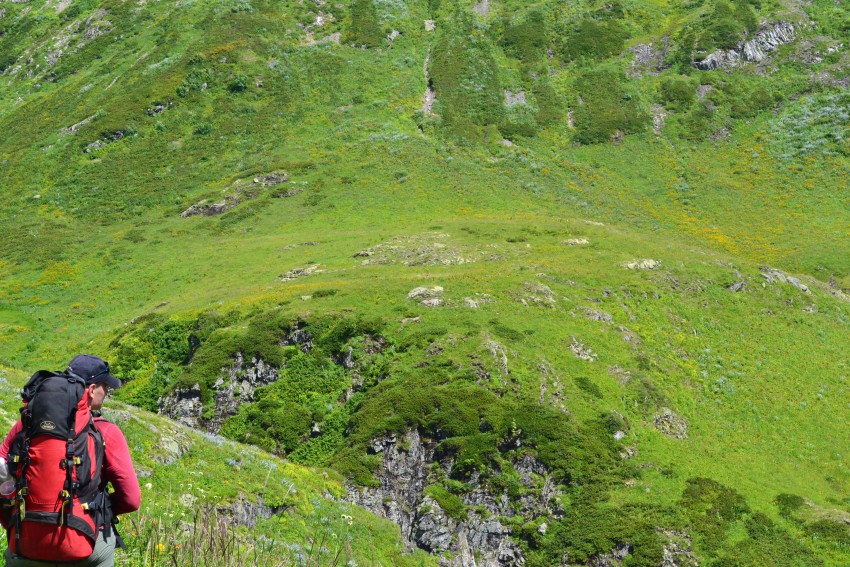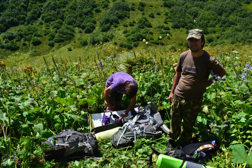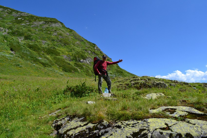 Когда нам вечером передали пропуска – там было написано Бзерпинский карниз-перевал Псеашхо-оз.Дзитаку …и т.д. То есть, мягко скажем, несколько не туда. Но уже что-либо исправлять было некогда, да и не особо хотелось. Как потом нам сказали на обратном пути люди, которые тоже оформляли пропуска – оказывается нет маршрута на вершины Псеашхо (2-й приток Пслуха – перевал Строительный — Южная Псеашхо, Северная Псеашхо). Поэтому девочки в конторе пишут классический туристический маршрут на Семиозерье. А шли мы получается все равно нелегально и нас могли не только снять с маршрута, но и крупно оштрафовать. Я никогда этим не заморачивался (наверное это и к лучшему), но как–нибудь при случае все-таки уточню в заповедной конторе так ли это и почему так?