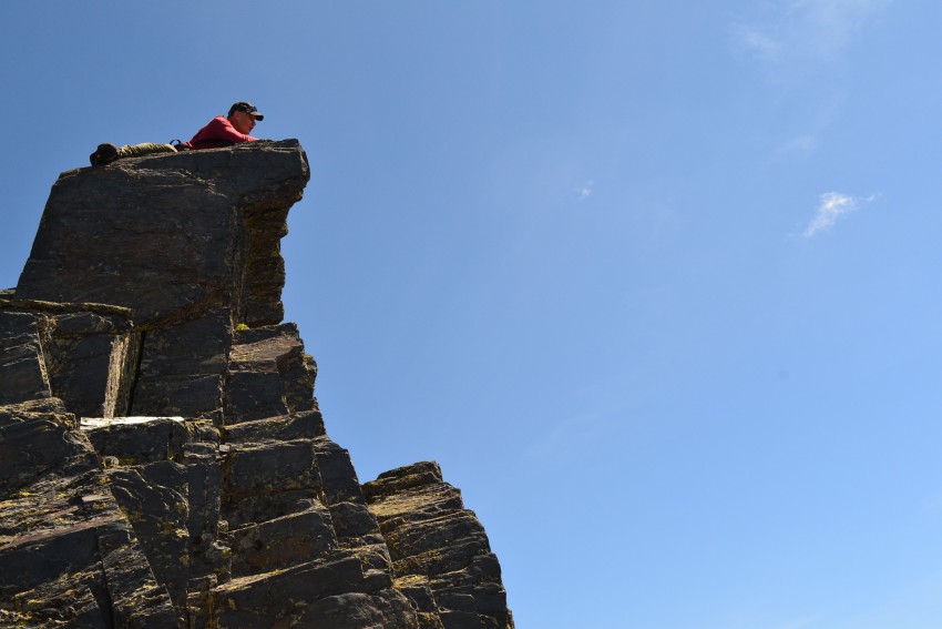 Через час с небольшим мы уже были у подножья горы. Решили не идти к Перевалу Строительный – слишком много сыпухи, по которой идти мало удовольствия и решили сразу набирать высоту по скальному участку с левой стороны. Лазить все-таки намного интереснее, чем прогребать-пробуксовывать на сыпухе по более пологому склону. Пропитываясь величием камней, чувствуя их на пальцах мы наслаждались открывающимися после каждых нескольких метров ракурсами и диковинными изваяниями.