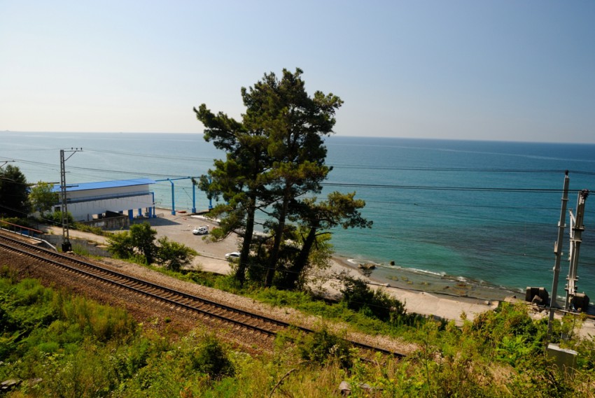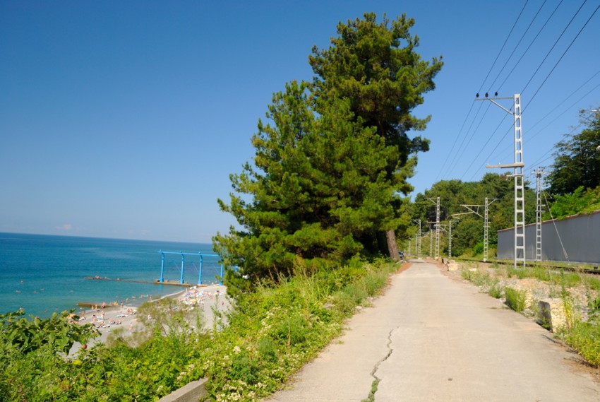 До ближайшей электрички было еще много времени, поэтому я решил пойти пешком до Уч-Дере. Сначала шел по железной дороге, потом свернул к пансионату Лучезарный, оттуда забрел в какой то лесок с колючкой и пошел по тропе, рассуждая что если есть тропа то куда то она выведет. И действительно, через какое то время появился красивый сосновый лес из которого я спустился к пансионату Белые Ночи. Пройдя еще немного попадаю на платформу Уч-Дере. Место довольно красивое, сосны, чистое море, свежий воздух.
