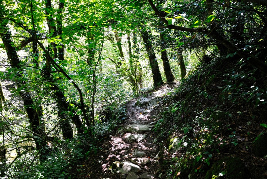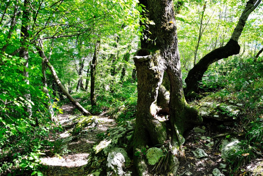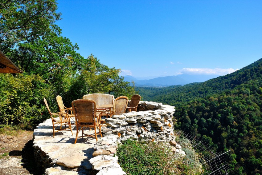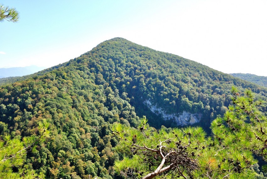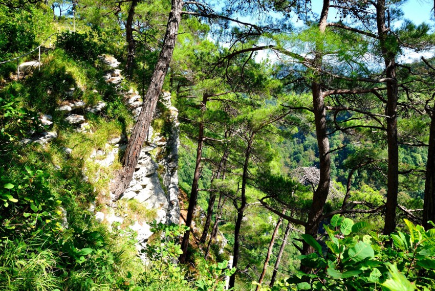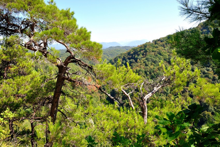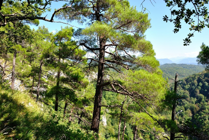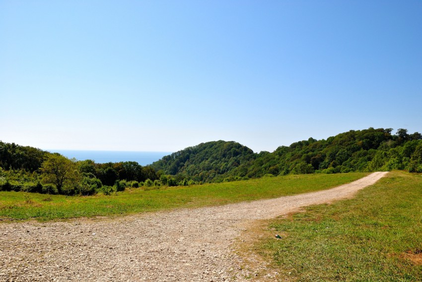 Отсюда открываеться великолепный вид на гору Ахун, реку Агуру(видно даже водопад), также очень хорошо просматриваеться Кавказский хребет, я увидел даже Скальный участок старой дороги на Красную поляну и поселок Каменку, где я уже бывал.На самой высокой точке расположена смотровая площадка, здесь же стоит статуя Прометея, которого по легенде приковали цепями к скале.Тут же есть бар и можно немного передохнуть.Дальше тропинка уходит вниз и идет также вдоль обрыва, все тоже промаркеровано, заблудиться довольно сложно.