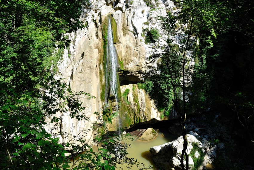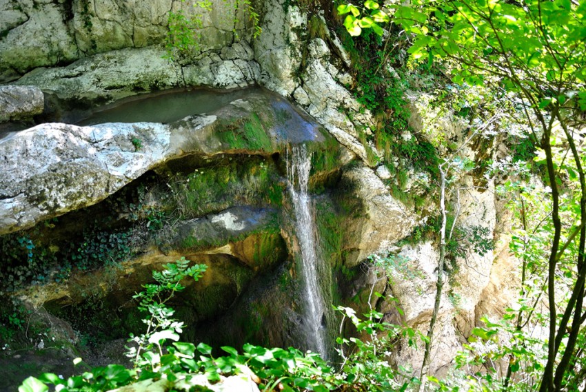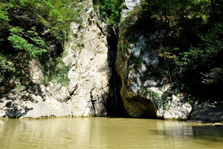 Следующим интересным местом по пути нашего маршрута являеться Чертова купель.Это небольшое озеро и живописный водоскат высотой 3 метра, так же тут есть небольшая пещера названная Чертова Нора.