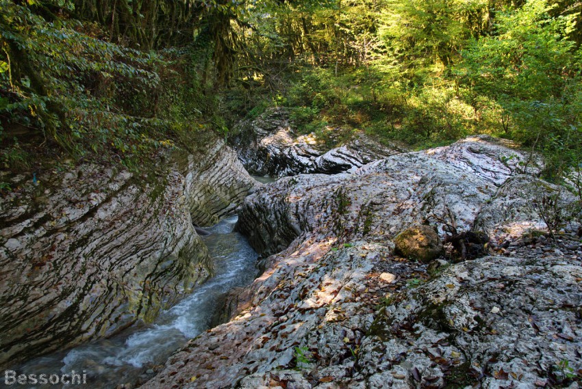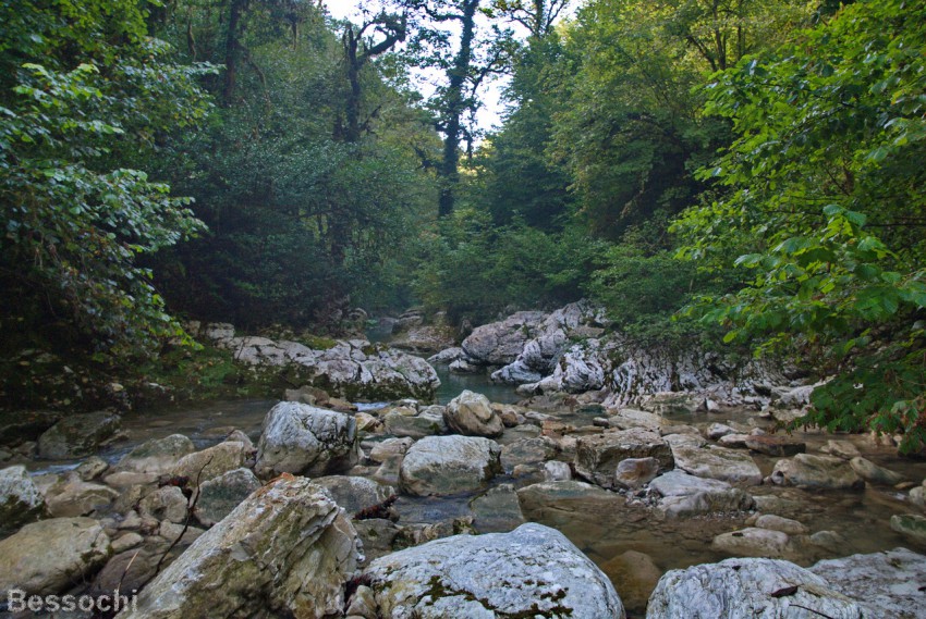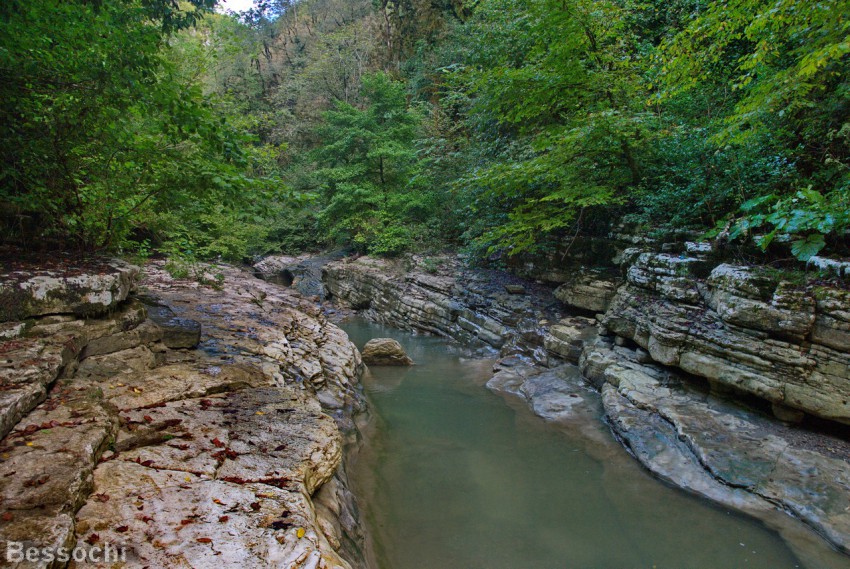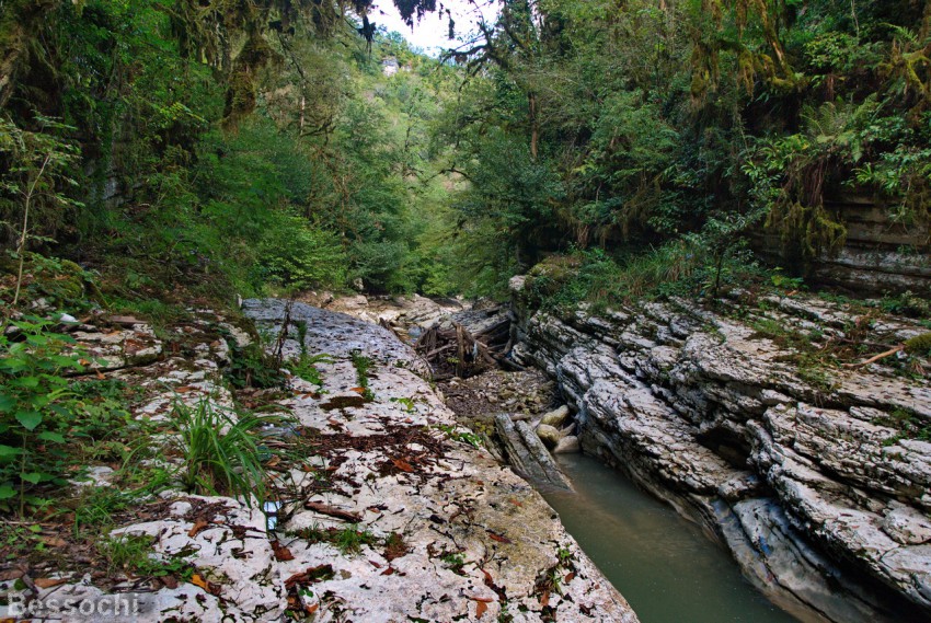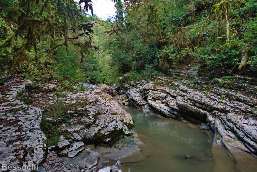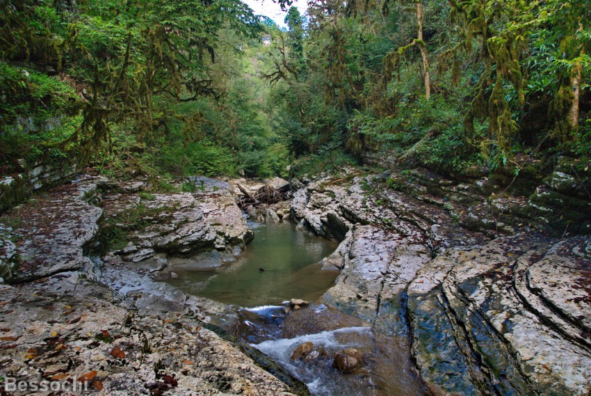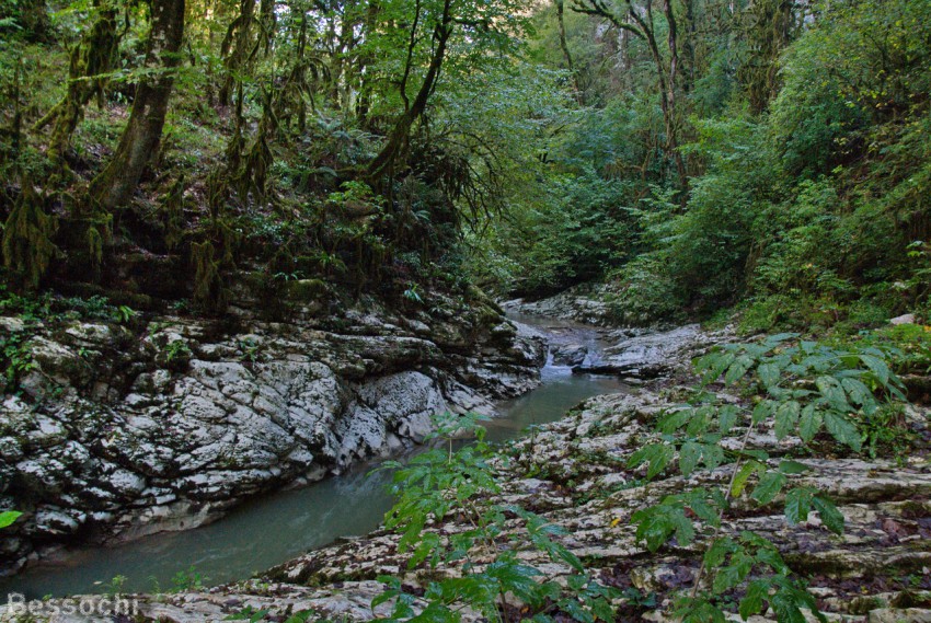 Продолжу свой рассказ о прогулке вниз по течению рек Псахо и Кудепсты, напомню, что начал я свое путешествие из села Галицыно, затем спустился в село Лесное, что бы осмотреть Троице-Георгиевский женский монастырь, а от Лесного минут за 40 спустился по руслу реки Псахо к началу «Мокрого» каньона.