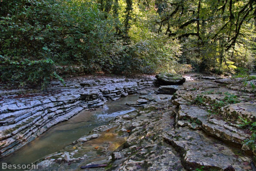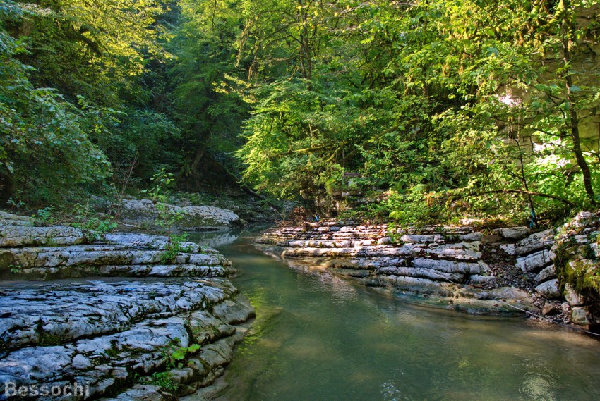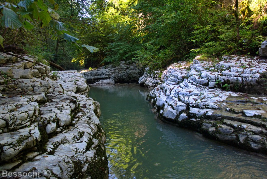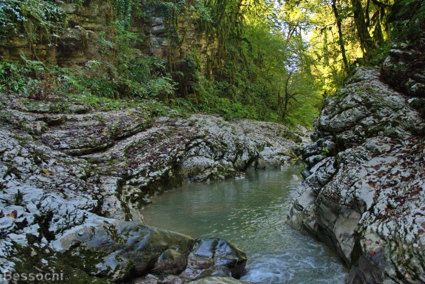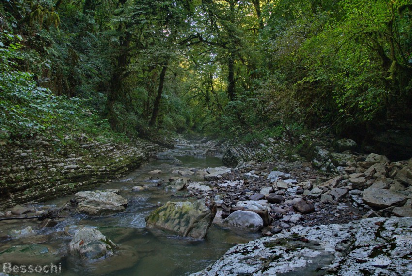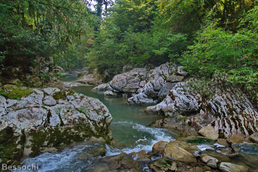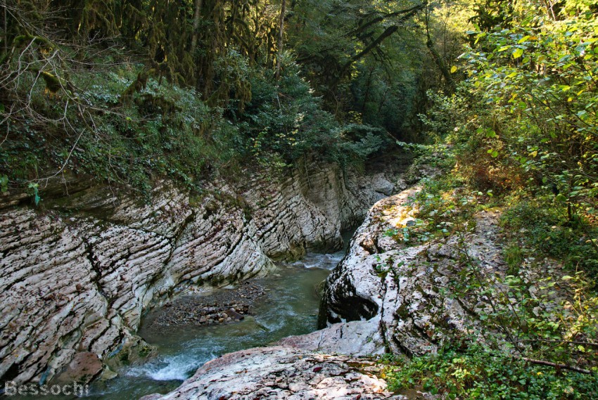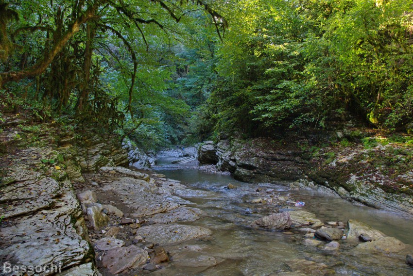 Продолжу свой рассказ о прогулке вниз по течению рек Псахо и Кудепсты, напомню, что начал я свое путешествие из села Галицыно, затем спустился в село Лесное, что бы осмотреть Троице-Георгиевский женский монастырь, а от Лесного минут за 40 спустился по руслу реки Псахо к началу «Мокрого» каньона.