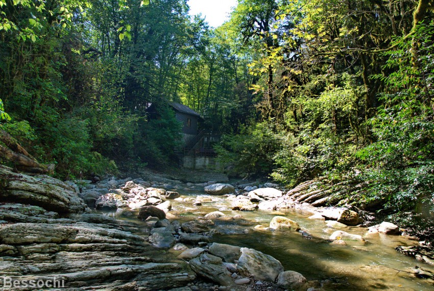 Еще около получаса пути вниз по течению реки Псахо и мы выходим к Гостевому дому «Голицыно», это и есть конец " Мокрого" каньона, но не конец нашего маршрута, напомню, что мы должны спуститься по Псахо и Кудепсте непосредственно в поселок Кудепста, где река впадает в море.