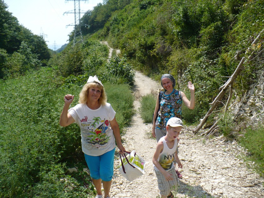 По соседству с нами отдыхали мужчина и женщина. Она выбрав самое открытое место, принимала солнечные ванны, а мужчина вооружившись пластиковой бутылкой, бегал за водой, и заботливо поливал свою даму с головы до ног вот уже более полу часа, и похоже останавливаться не собирался. Ну у всех свои дела — а у нас поход! Угостив на прощание кота куриным наггетсом, направились прямиком к Свирскому ущелью.