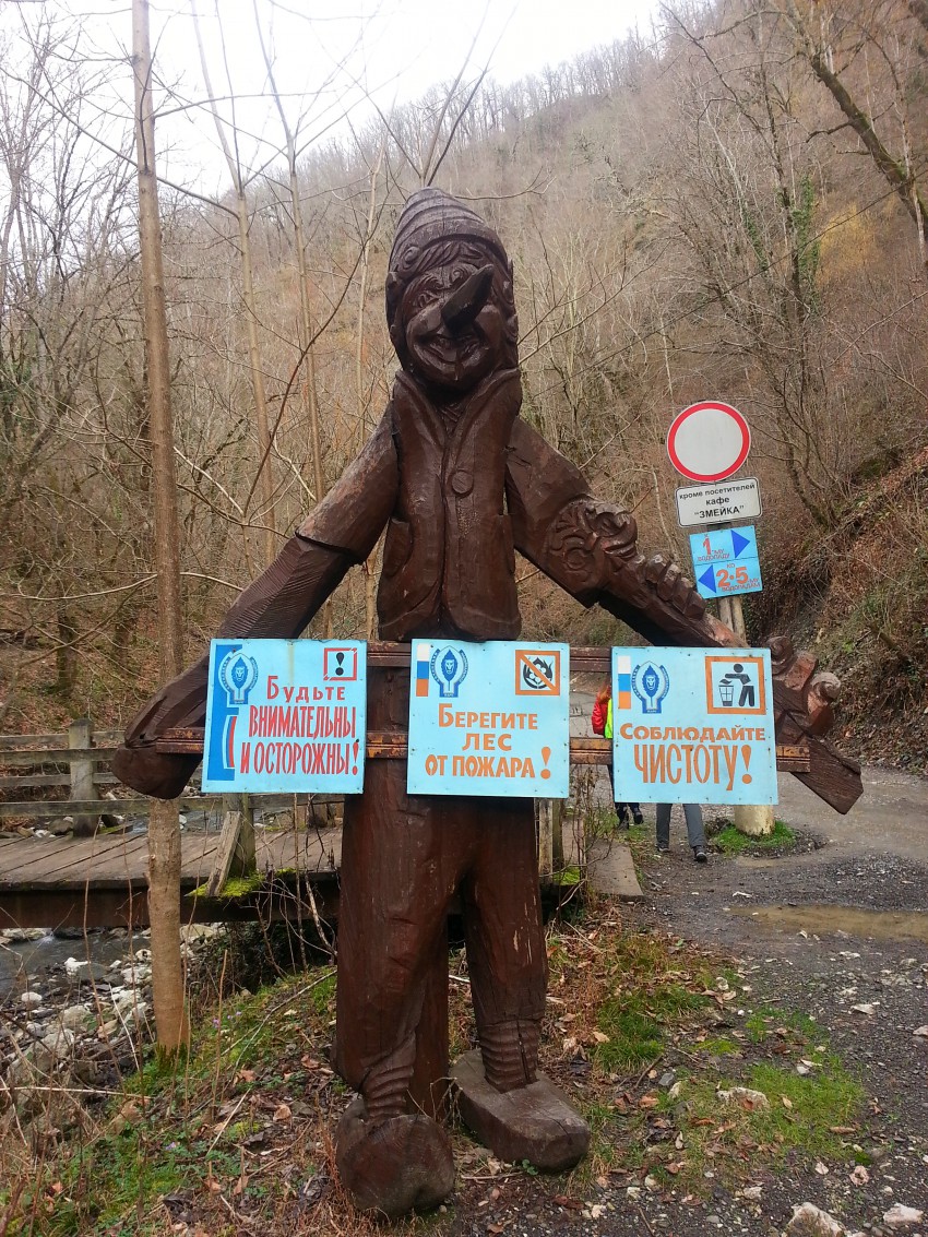 Старая Мацеста, после последних домов чуток по лесу проехать и будет большой плакат с указателем «Змейковские водопады». Дорога очень хорошая