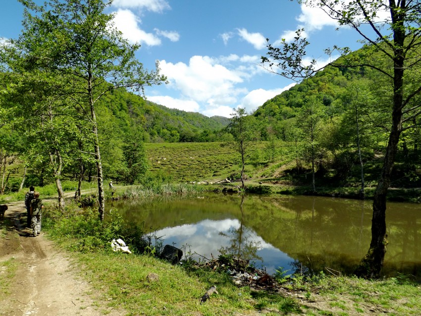 Выше озера находятся большие чайные плантации. Видно, что за чаем ухаживают, он обрезан и сорняка нет. Стадо коз помогает обрезке) Наверное, в процессе дойки получается уже готовый продукт, чай с молоком)