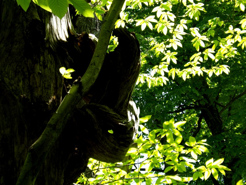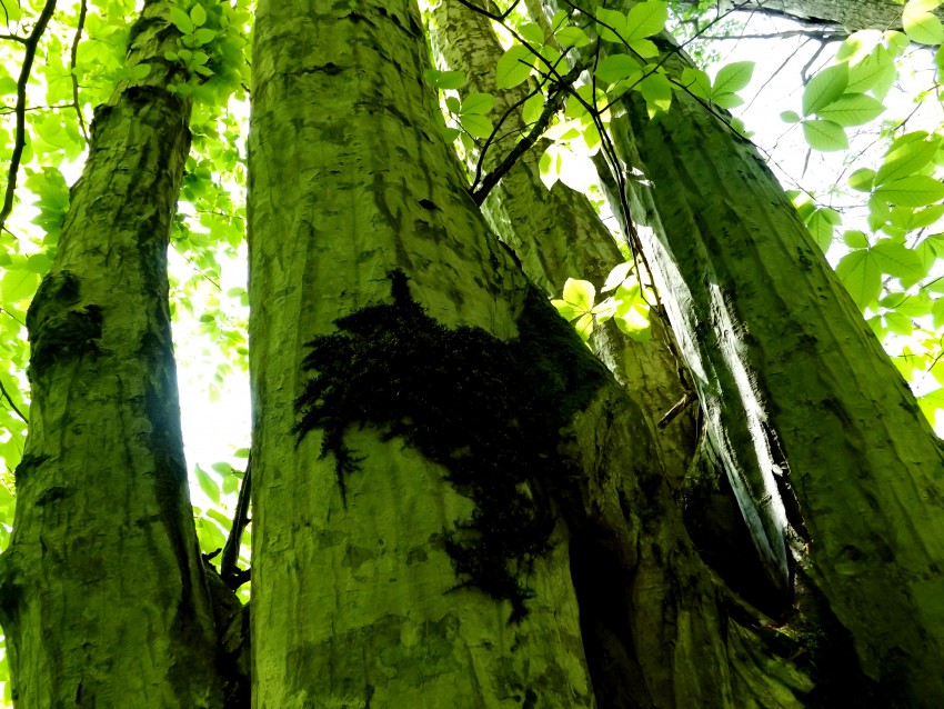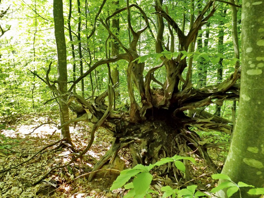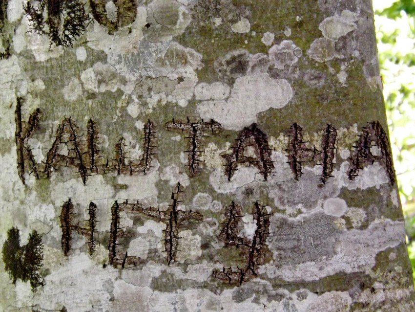 Кто-то написал свою обиду на стволе бука. А он был. Каштана ещё совсем недавно здесь было много, но он погибает. Болезнь эта пришла к нам уже давно, каштаны гибнут медленно, но верно. Теперь и самшит к нему присоединился.