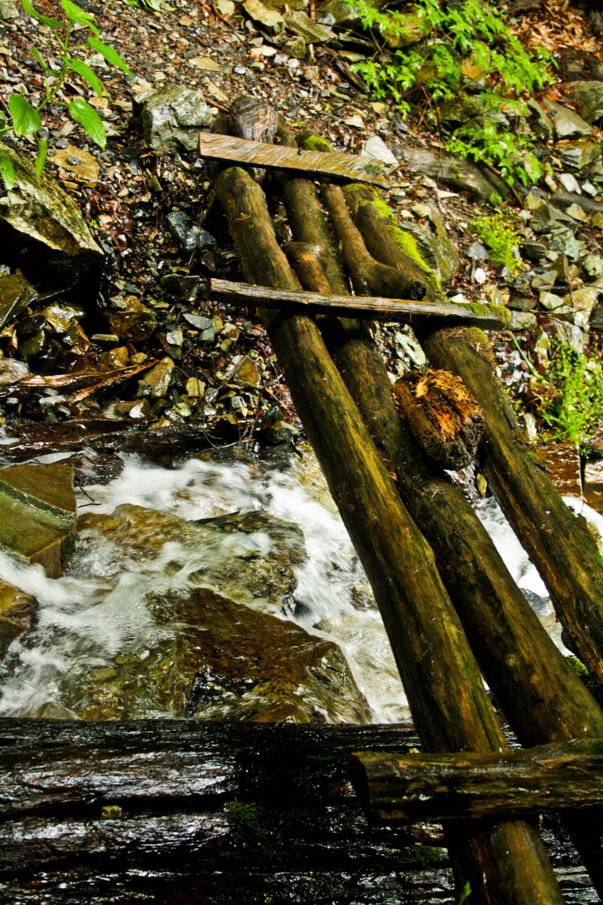 Чтобы добраться и увидеть водопад нужно было пройти через 2-й ручей впадавший в бурный 1-й, по мокрому, хлипкому мостику, видно давно сооруженному.