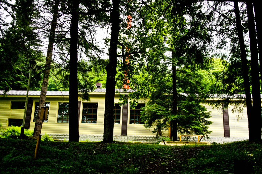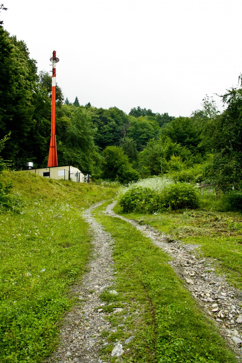 В ней было отверстие для прохода и даже ступеньки. Преодолев преграды я двинулась вверх по тропе-дороге и скоро я вышла к базе отдыха напротив здания с вышкой.