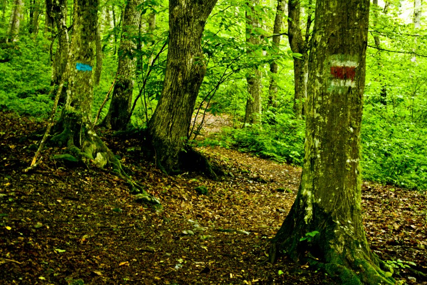 Пройдя по ступенькам вверх и преодолев еще один забор она меня скоро вывела на маркированную тропу.