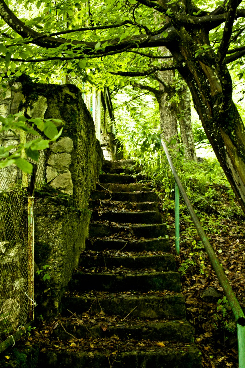 Послушав интуицию я не пошла за туристами, а свернула за камень и пошла по тропе мимо заброшенных спортивных площадок.