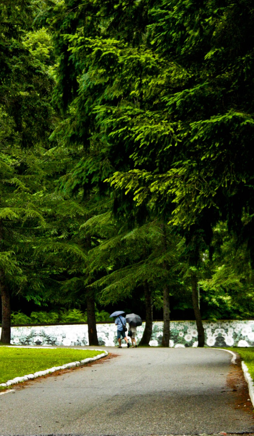 Вышла на дорогу базы ведущую вверх и пошла вслед гуляющим туристам под зонтиком.
