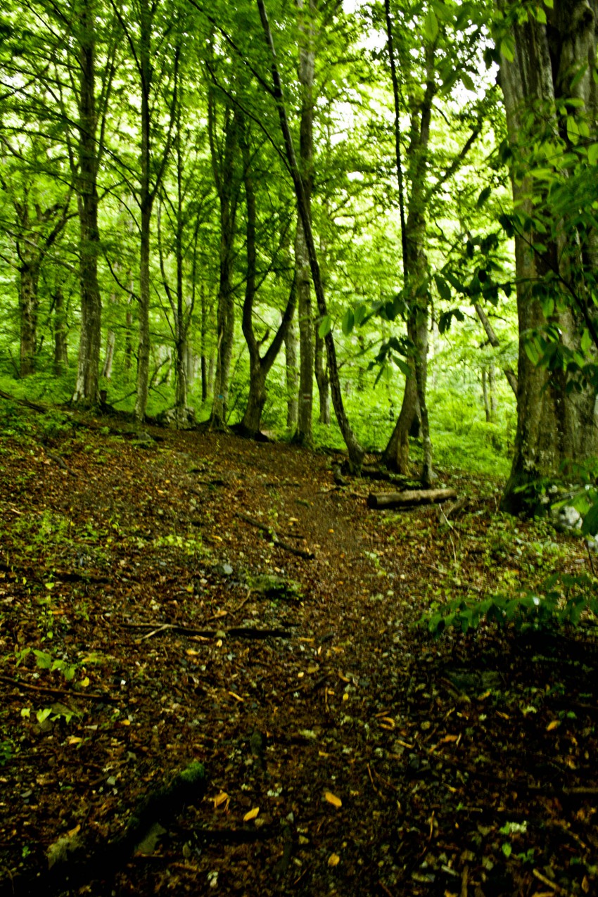 Когда ты идешь в гору, то тебе жарко, а как только останавливаешься на несколько минут ужу сразу начинаешь промерзать. К тому времени штаны мои были наполовину мокрыми от объятий листвы деревьев и травы вокруг, а трекинговые ботинки тоже не выдержали испытание дождем и в одном уже откровенно хлюпало. На этот случай и такую погоду неплохо бы иметь запасные сухие носки и бахилы внутрь. Возьму это на заметку для следующей прогулки. А вообще хорошая экипировка и снаряжение многое решает по части комфорта. Перекусив и посидев у водопада под большим буком, получилось немного помедитировать.