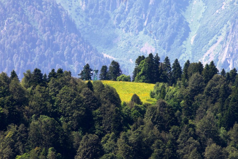 Видно уголок 1-го поселка и лысину на горе от схода лавины, она немного не дошла до дороги, иначе откапываться пришлось бы долго, еще и озеро может образоваться, если новый лес не успеет вырасти до следующего селя.