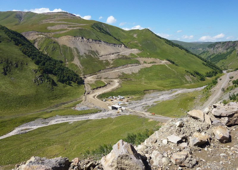 Не доезжая до Джила-Су, мы свернули с асфальтовой хорошей дороги на когда-то пробитую геологами дорогу к Поляне Эммануэля. Эта дорога – первое и крайнее препятствие на пути к благополучному началу и завершению Вашего путешествия на Эльбрус с Севера. Жестяная жесть. Проходит по краю пропасти, да еще приходится разъезжаться с другими авто.