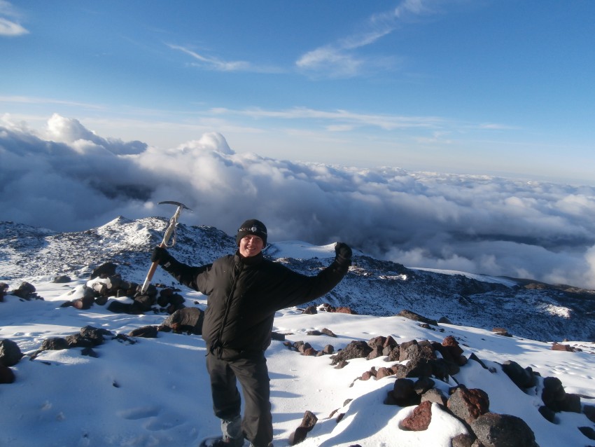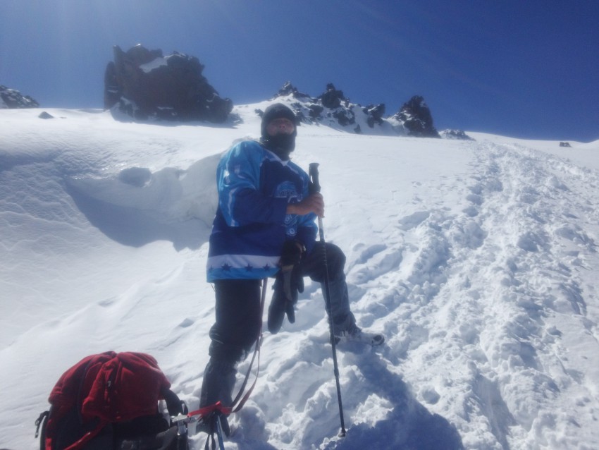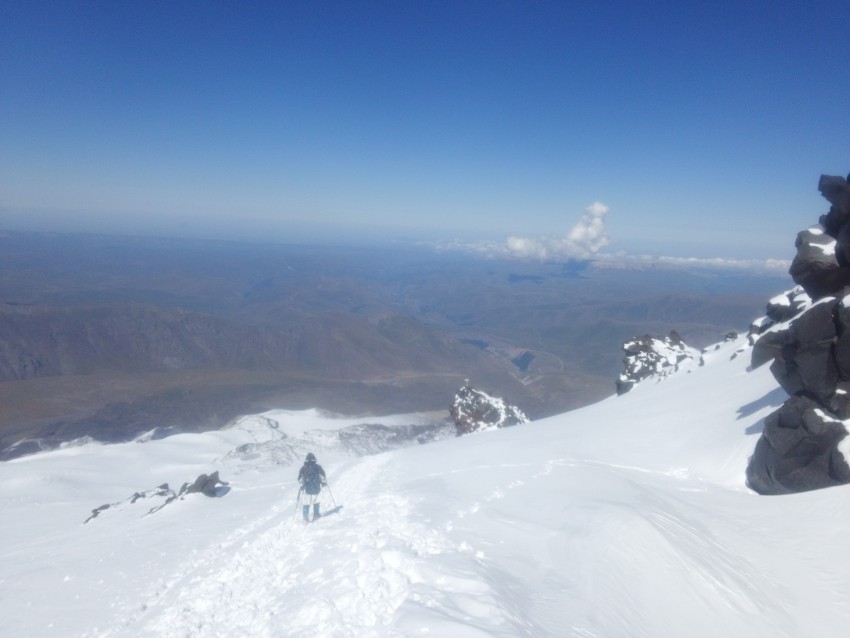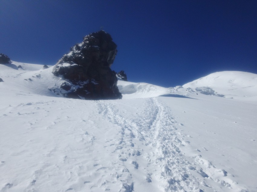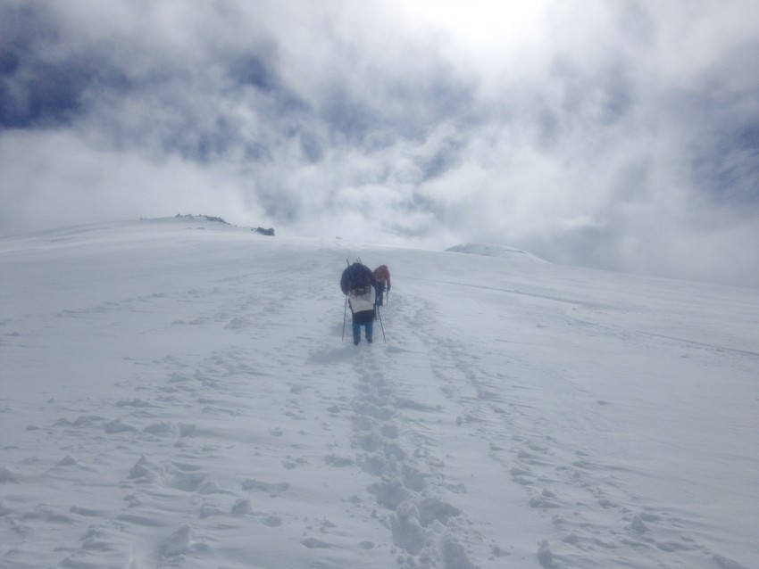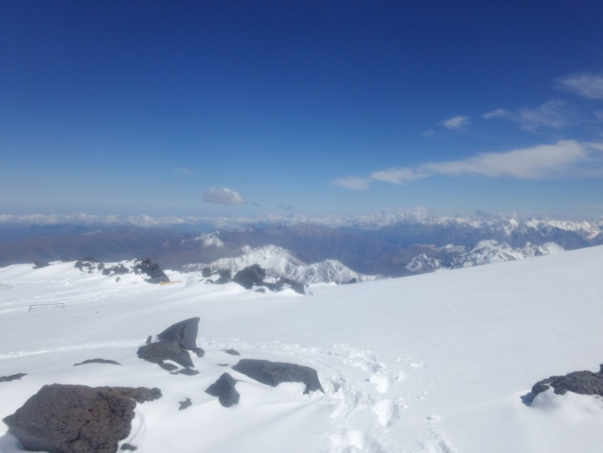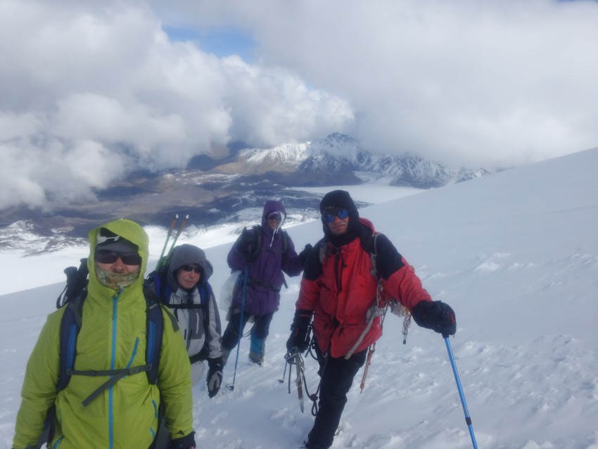 Около 4850 встретил группу из Уральского турклуба. Поговорил с одним из участников – Алексеем Устюговым. Была великолепная погода. И в этот день несколько групп решились на восхождение.