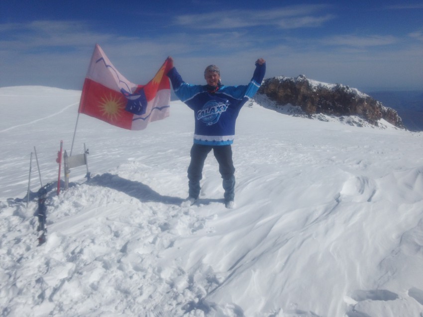 На часах было чуть меньше 8.45. Неплохо мы управились. За 7 часов из штурмового лагеря(3900) до Восточной вершины Эльбруса (5621).