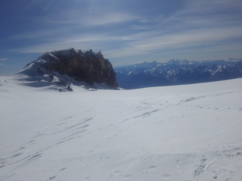 Вышли в 11.15 в полном составе, в связке (в некоторых местах встречаются трещины, что очень опасно).