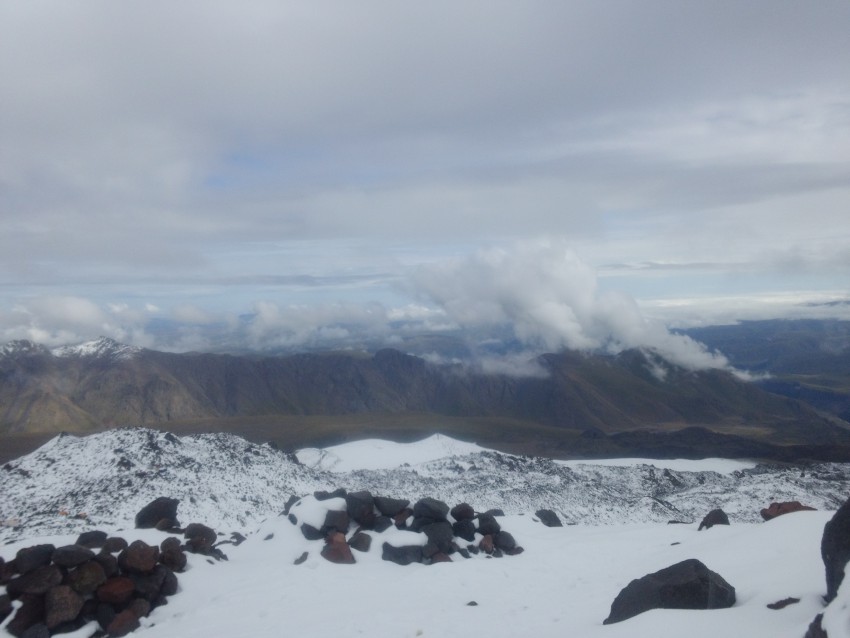 Голову не отпускало, тем временем, и тошнота не унималась. Мы находились на вершине около получаса. Надо было идти назад.